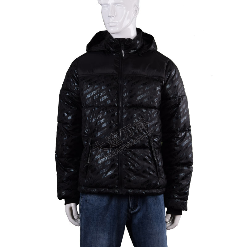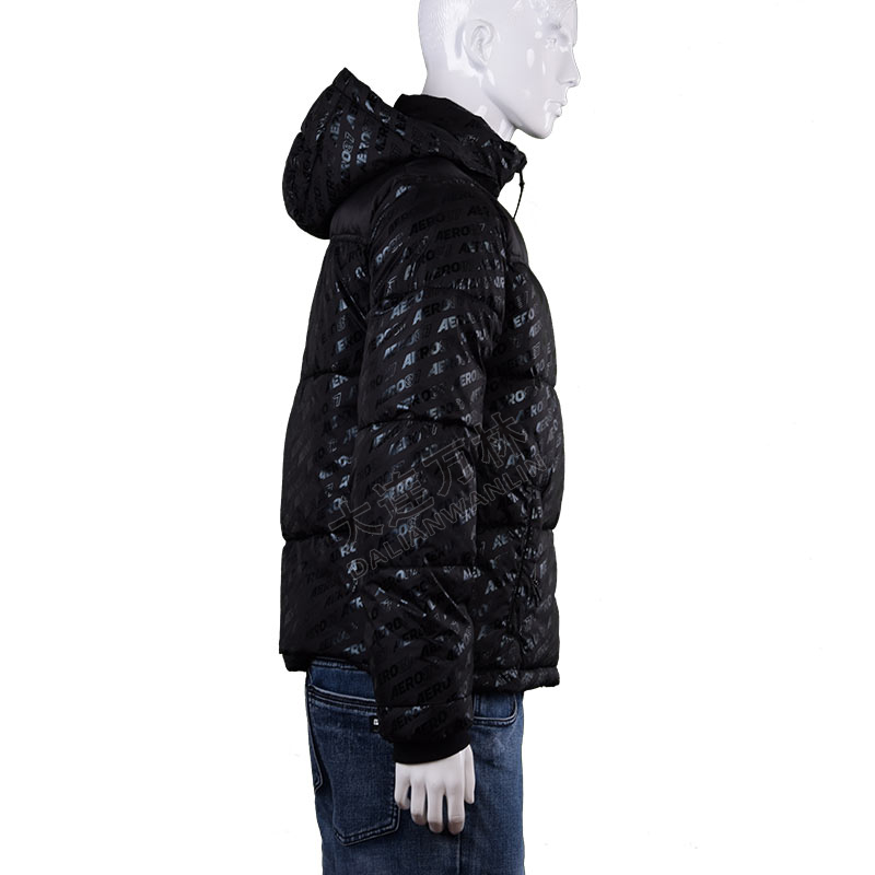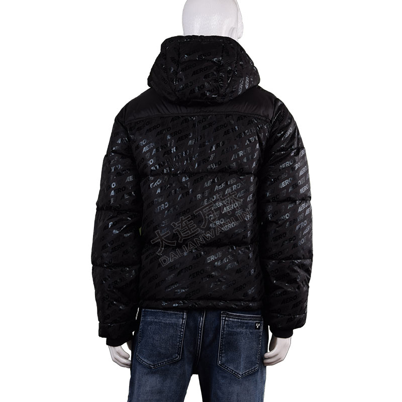 男士黑色印花羽絨服