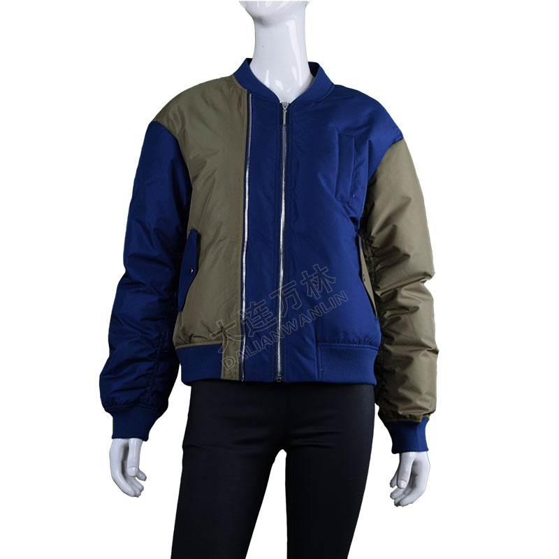女士拼接短款棒球棉服