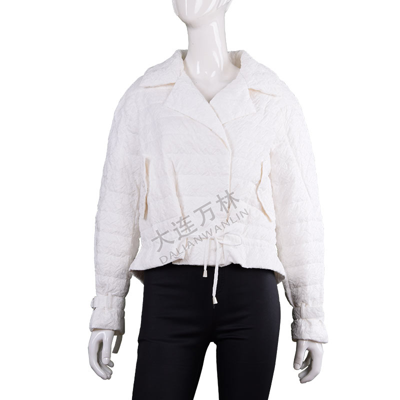 女士白色翻領(lǐng)薄款棉服