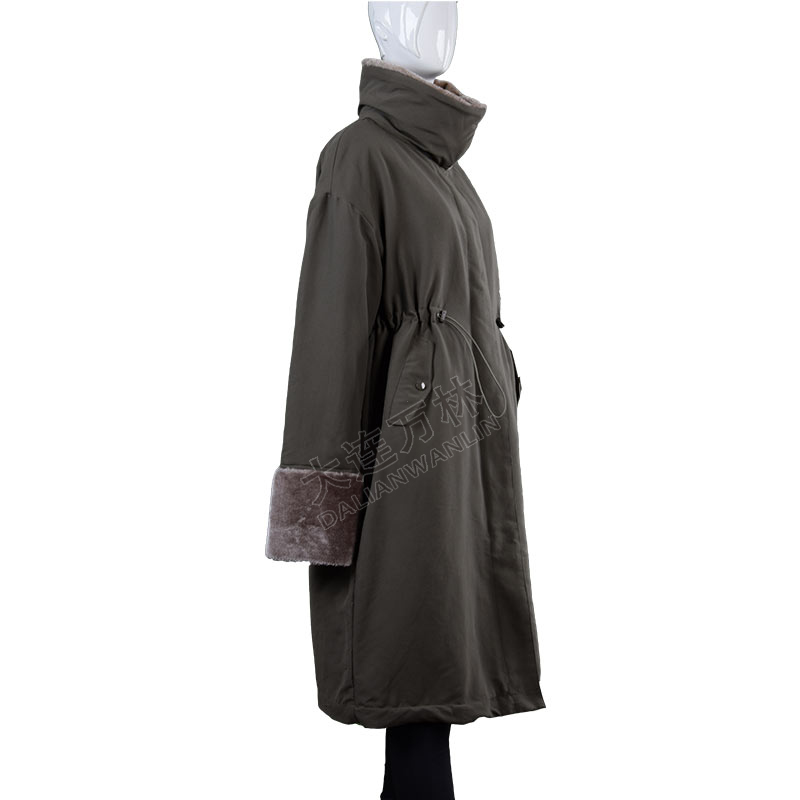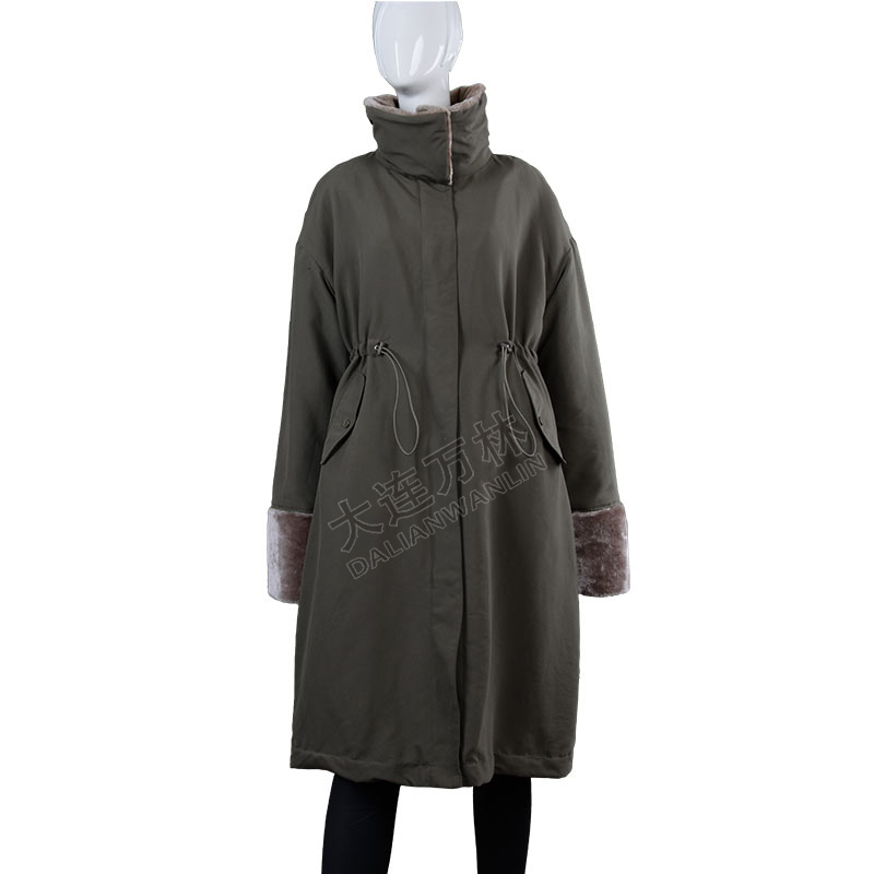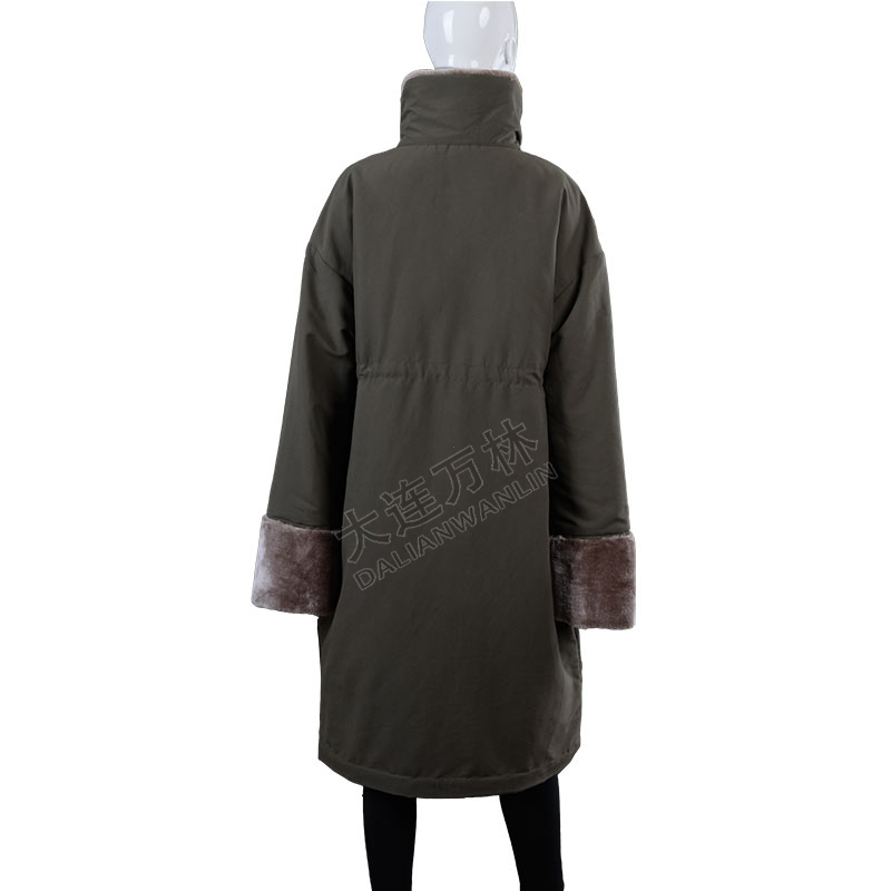 女士立領毛毛袖口長款羽絨服