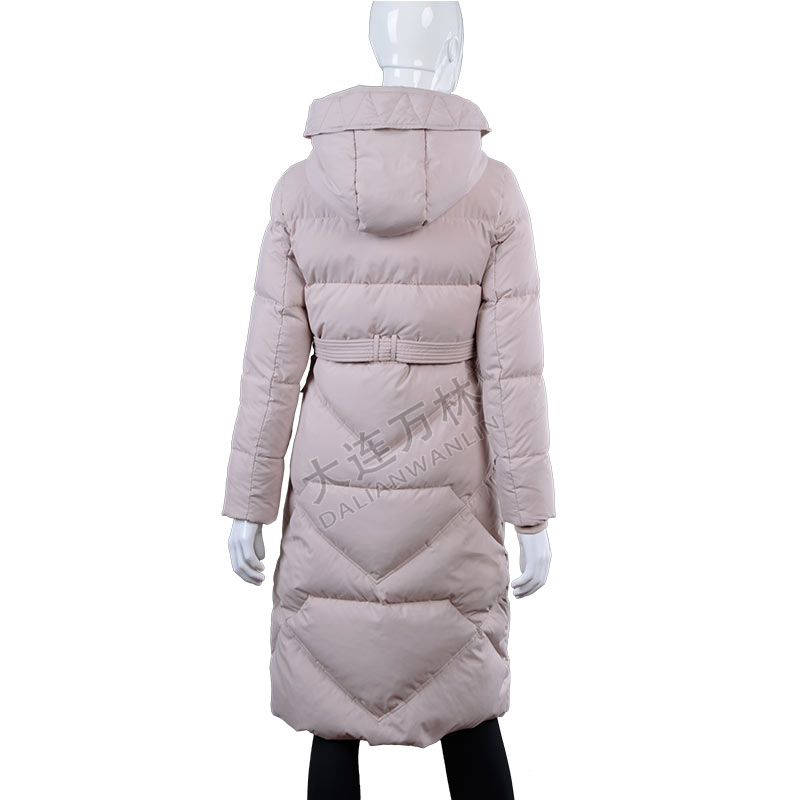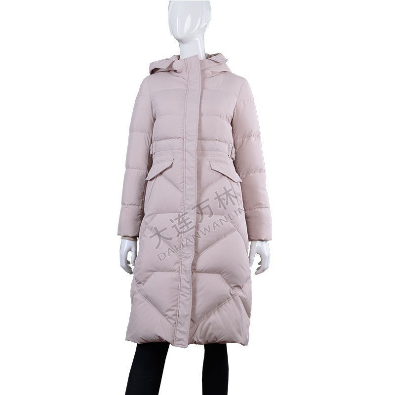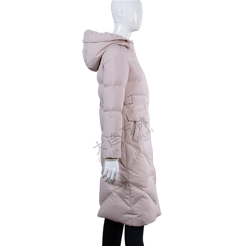 藕粉色長款連帽羽絨服