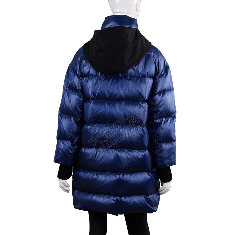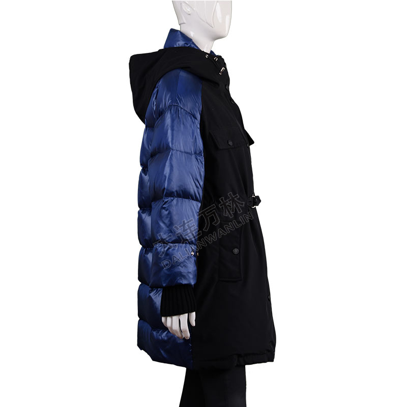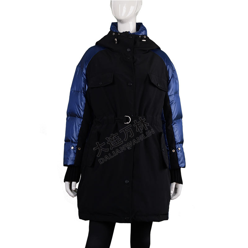 女士拼接收腰中長款羽絨服