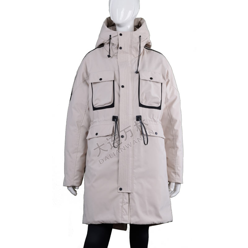 女士戶外腰部抽繩長(zhǎng)款羽絨服
