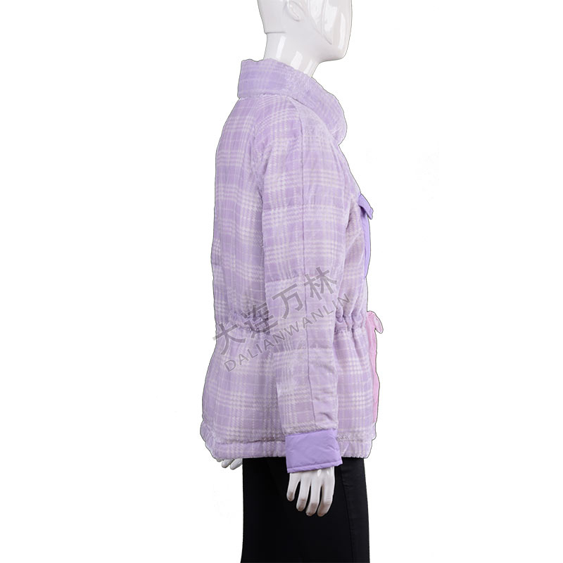 女士翻領(lǐng)拼接腰部抽繩羽絨服